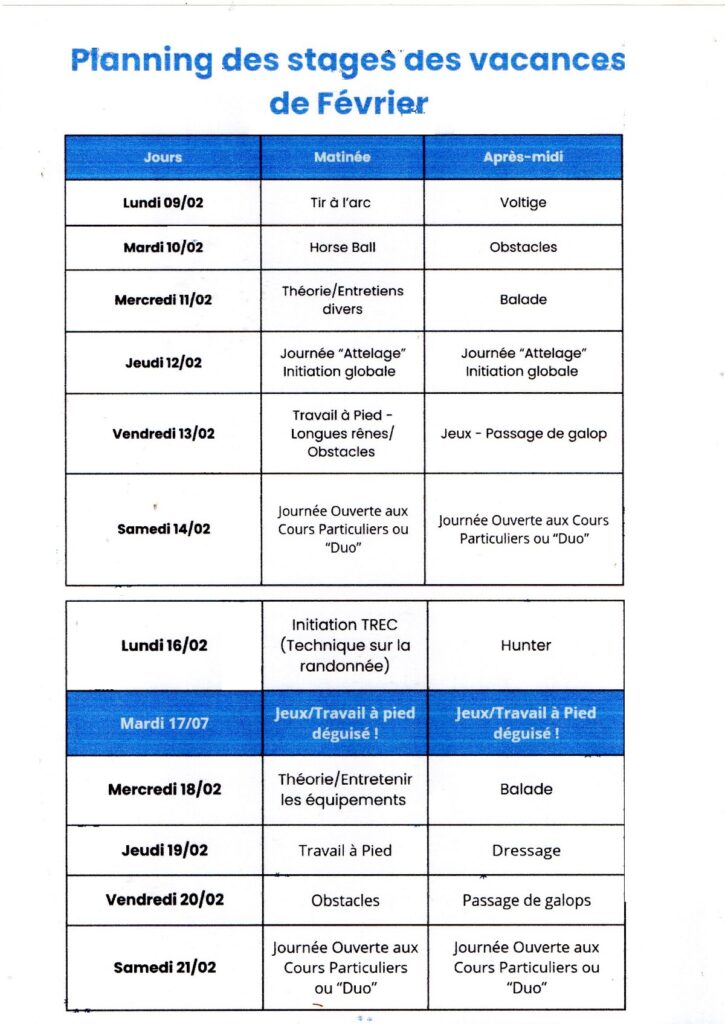 • Stages vacances Février 2026